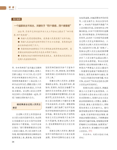 人民民主建设,把人民当家作主具 发展全过程人民民主,根本是 人民民主。