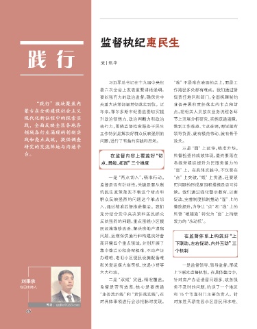 “践行”版块聚焦内 央重大决策部署贯彻落实到位。近 业务开展和责任落实的卡点和堵