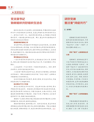 要组织搞好整改,做好思想工作。组织生活会后,党支部书记 长效,融入日常、抓在经常。要