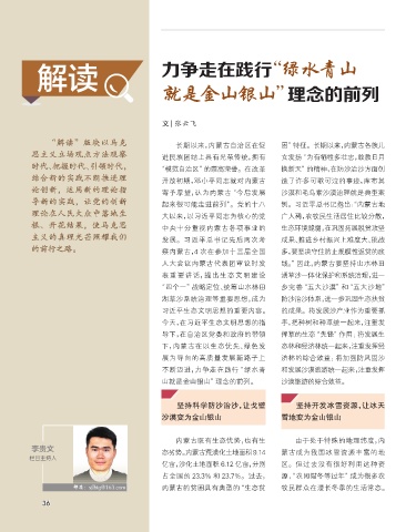 不断迈进,力争走在践行“绿水青 和发展沙漠旅游统一起来,注重发挥