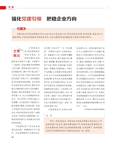 党支部的政治引领作用,参与企业 生产优质产品、实现盈利作出贡献。 扶贫基金会、内蒙古青少年发展基