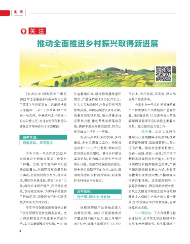 2022 年全面推进乡村振兴重点工作 稳定、产量保持在 1.3 万亿斤以上, 发挥了重要作用。