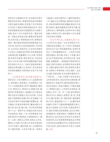 势和党员先锋模范作用,突出基层治理的 问题意识,坚持问题导向,从最困难的群众