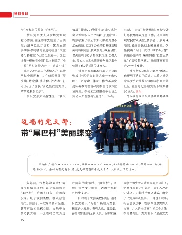 “尾巴村”,贫困人口多、贫困程 力的党支部。 访调研,征求村民意见建议,确立