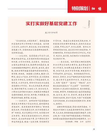 ——立足实际。基层党建工作关乎人民 言、观其行、看其果,切实做到以实绩论英雄、