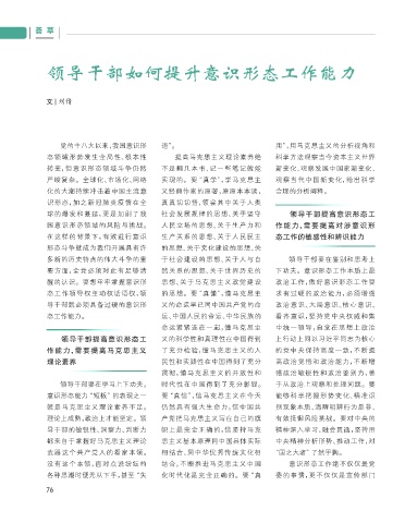 领导干部提高意识形态工 义的科学性和真理性在中国得到 上行动上同以习近平同志为核心