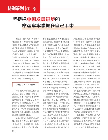 的基点上,才能把中国发展进步的 特色社会主义的伟大成就,为实现