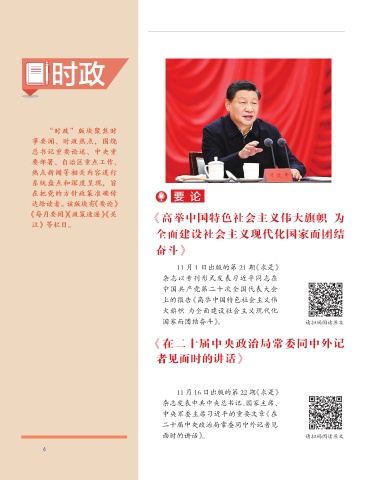 《每月要闻》《政策速递》《关 《高举中国特色社会主义伟大旗帜 为