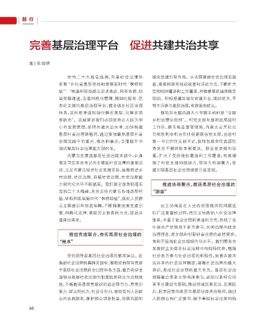 于基层社会治理的全过程和各方面,着力将党全 共识,形成社会治理的最大合力。基层社会治