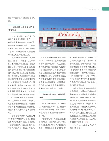要保证红色文创产品的实用                   色文化。                               客通过沉浸式互动体验,从历史的观