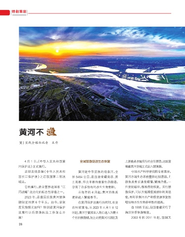 国长江保护法》之后我国第二部流 长 5464 公里,是连接青藏高原、黄 黄河水域生态系统整体比较脆弱,上