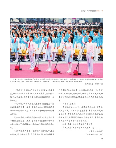 7 月 1 日上午,庆祝中国共产党成立 100 周年大会在北京天安门广场隆重举行。共青团员和少先队员代表集体致献词,向党致
