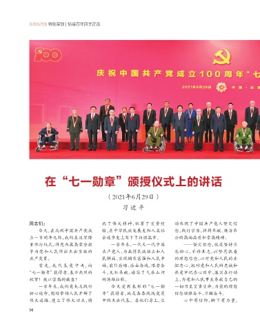 一百年来,我们党矢志践行 今天受到表彰的“七一勋 一切乃至宝贵生命,为党的理想