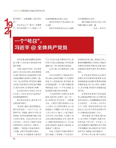 上所说的,一百年来,中国共产党团 卫、发展中国特色社会主义;才从站 对党忠诚、不负人民”。在大会上,习
