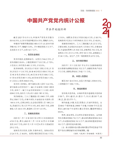 截至 2021 年 6 月 5 日,中国共产党党员总数为 占 9.5%。发展 35 岁及以下党员 382.4 万名,占 80.7%。