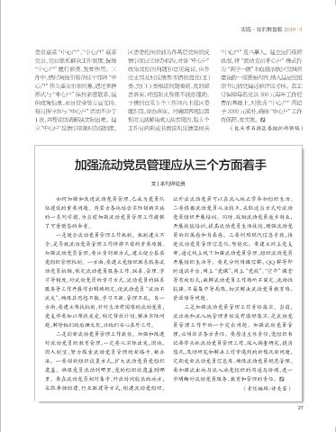 加强流动党员管理,要注重创新方式,建立健全基层 部,通过线上线下加强流动党员管理,组织流动党员