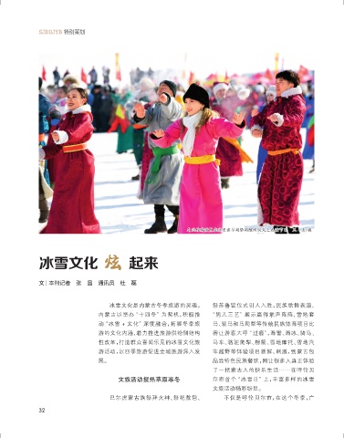动“冰雪 + 文化”深度融合,拓展冬季旅 马、驯马和马爬犁等传统民族体育项目比