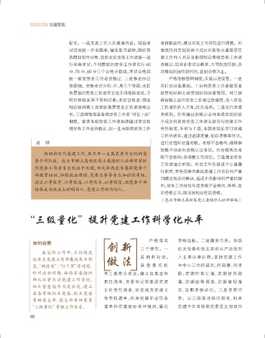 “三级量化”考核工作体系。 清单和党建目标考评细则,量化 党建半年考核和党委党支部双向