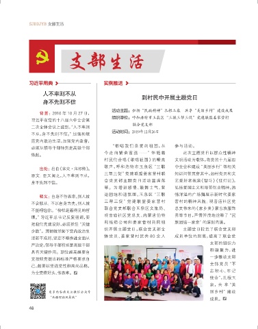 村民们合唱《歌唱祖国》的嘹亮 文明活动为载体,将党的十九届四