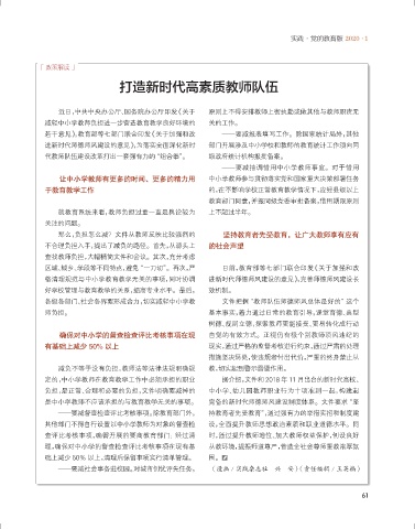 各级各部门、社会各界要形成合力,切实减轻中小学教 文件把握“教师队伍师德师风总体是好的”这个