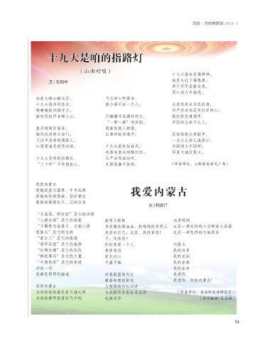 心窝窝满是爱党的情。 十九大报告似春风, 共圆伟大中国梦,