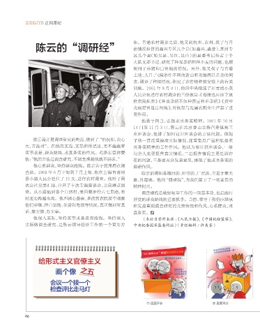 他心系群众,坚持群众路线。陈云善于使用蹲点调 调研作风。