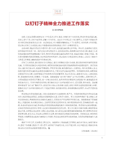 以钉钉子精神全力推进工作落实