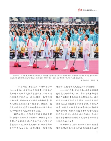 2021 年 7 月 1 日上午,庆祝中国共产党成立 100 周年大会在北京天安门广场隆重举行。共青团员和少先队员代表集体致献词,