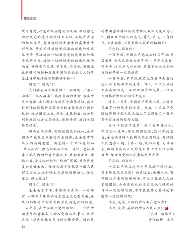史进程中始终成为坚强领导核心! 一百年前,中华民族呈现在世界面前的