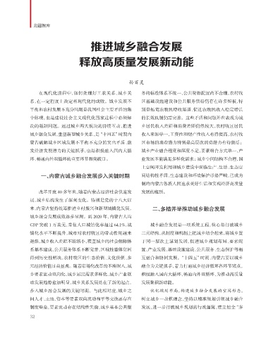 乡要素流动双向化、城乡居民需求多样化、城乡产业联 积极融入国内大循环,畅通内外双循环,为推动高质量