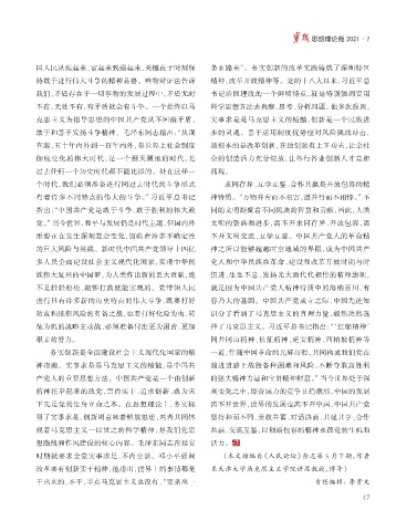 指出:“中国共产党是敢于斗争、敢于胜利的伟大政 同的文明凝聚着不同民族的智慧和贡献,因此,人类