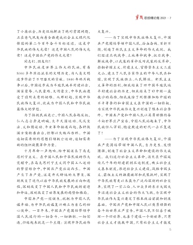 强国的第二个百年奋斗目标迈进。这是中 共产党团结带领中国人民,浴血奋战、百折不