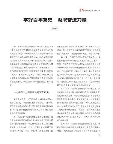2021 年是中国共产党成立 100 周年,在这个时 家和民族的前途命运,成功开辟了中国特色社会主义