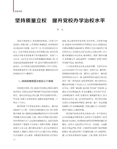 教学规律,深入阐释党的创新理论和党中央重大决策 质量提升机制是质量立校的支撑。办学质量是