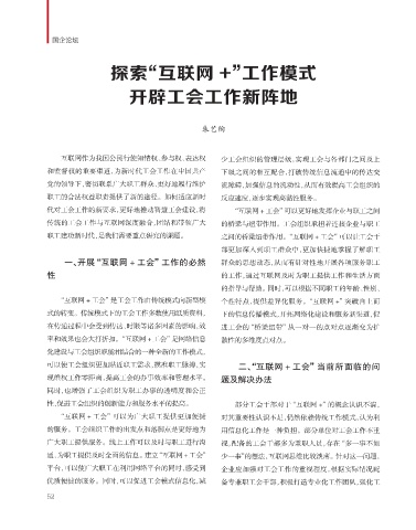 “互联网 + 工会”是工会工作由传统模式向新型模 个性特点,提供差异化服务。“互联网 +”突破自上而