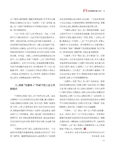 的问题。针对这一问题,工会组织应积极推进线上和 “互联网 + 学习”模式,职工参与更加广泛。要深