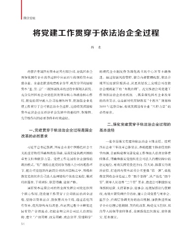 一、党建贯穿于依法治企全过程是国企 基本途径