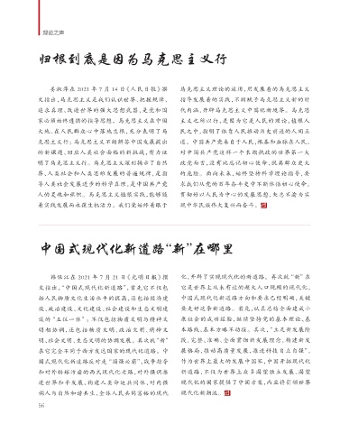 克思主义行;马克思主义不断解答中国发展提出 道。中国共产党来自于人民,根基和血脉在人民。