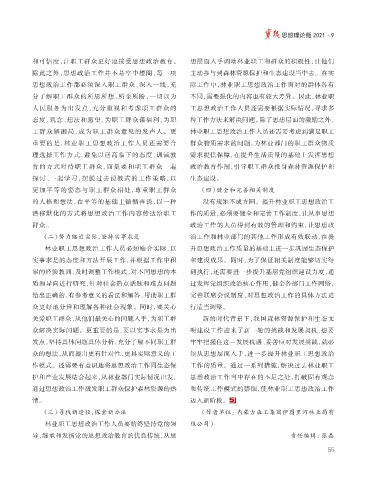 思想政治工作都必须深入职工群众、深入一线,充 际工作中,林业职工思想政治工作面对的群体各有