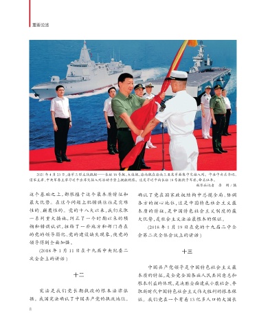 2021 年 4 月 23 日,海军三型主战舰艇——长征 18 号艇、大连舰、海南舰在海南三亚某军港集中交接入列。中共中央总书记、