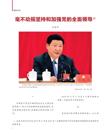 这是习近平总书记 2012 年 11 月至 2021 年 7 月期间讲话中有关坚持和加强党的全面领导内