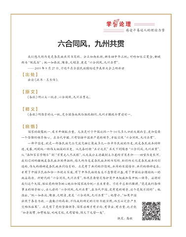 指出,“统一如秦汉、隋唐、元明清,更是‘六合同风,九州共贯’”;他警示,“如果中国