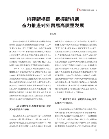 量发展、融入新发展格局做出新的更大贡献。 二、聚焦两个市场,创新贸促平台,促进