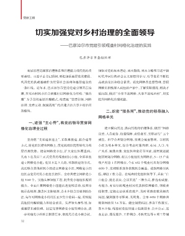 理”为手段的基层治理模式,构建起“党建引领、网格                             提升网格化治理效能。