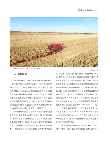 产的关键在于以玉米籽粒机械直收技术为引领,发挥 级以上。2020 年托管耕地中,91% 的耕地亩纯收入达