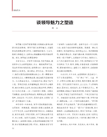 操守的直接体现。领导干部具有领导魅力,才能更 出众,有助于成长的恰恰是孤独。孤独是一种心灵