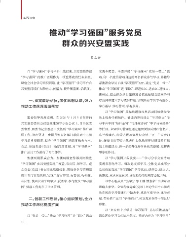 “学习强国”的推广运用作为一项重要政治任务来抓, 动,即一名党员带动身边的两名群众参与学习,并指导