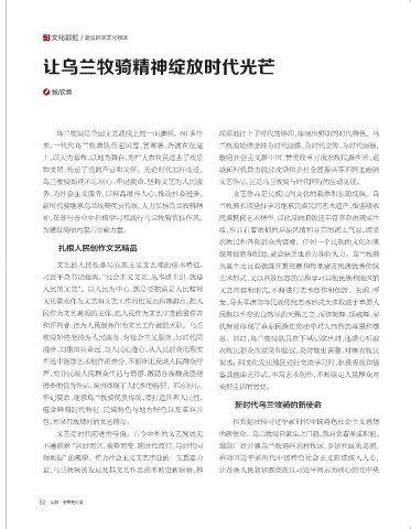 民作为文艺表现的主体,把人民作为文艺审美的鉴赏者 民赖以生存的自然界的天籁之音,而挤奶舞、顶碗舞、安 担负起满足人民群众日益增长的美好生活需要的 媒介大力宣传弘扬乌兰牧骑优良传统和作风,掀起社会