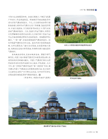 气象风险防控能力不断提升。三是汛期服务和预报预 工影响天气作业体系。人工影响天气在缓解水资源短 (作者单位:内蒙古自治区气象局) 呼和浩特气象站