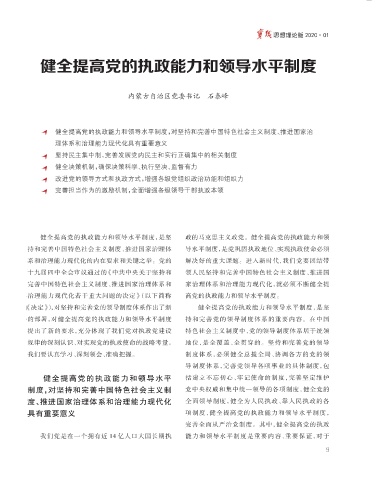 的部署,对健全提高党的执政能力和领导水平制度 持和完善党的领导制度体系的重要内容。在中国